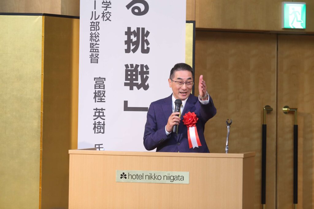 式典では、弊社の歩みを振り返り、未来への決意を新たにしました。続く記念講演では、開志国際高等学校バスケットボール部総監督・富樫英樹様より「無限なる挑戦」をテーマに、挑戦し続けることの大切さや、困難を乗り越えるための心構えについて熱く語っていただきました。